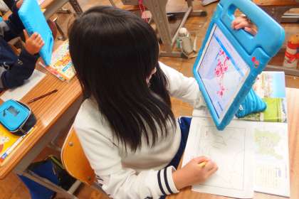 タブレットを使って愛知県について調べていました。