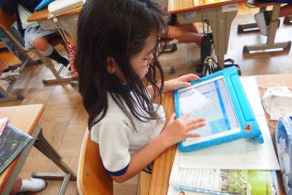 4年生の社会の授業です。 タブレットを使って愛知県について調べていました。