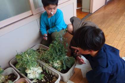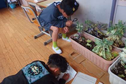 3年生の理科の授業です。 「生き物」を観察中です。 IEAI