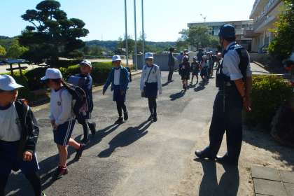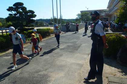 駐在さんが下校の見守りをしてくれました。 CHUZAI SAN