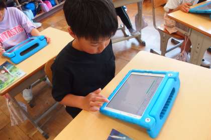 デジタルドリル(Qubena)に取り組む3年生です。