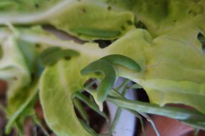 3年生が観察しているアオムシ、サナギです。