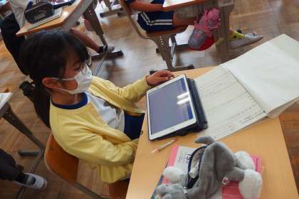 それぞれの児童が自分の考えをタブレットを使ってまとめていました。