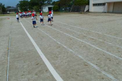 1年生の体育の授業です。 体力テストに向けて走る練習をしました。 TAIIKU