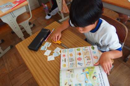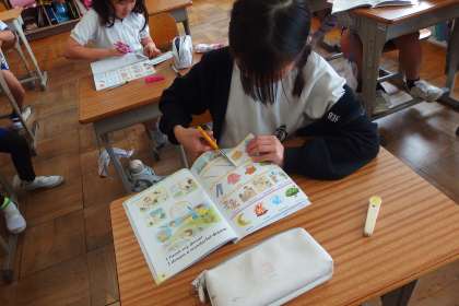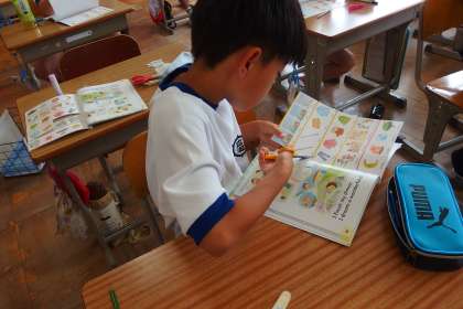 4年生の外国語活動の授業です。 GAIKOKUGO KATSUDOU