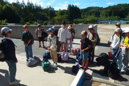 今日から2日間、5年生がキャンプに出かけます。 出発式の様子です。 ZKAI