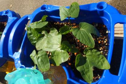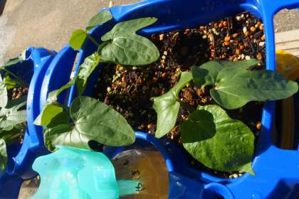 1年生が栽培しているアサガオは本葉が出てきました。 FAIN