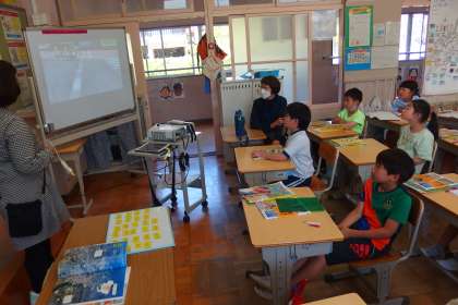 3年生の社会の授業です。 我がまち豊田市を学んでいました。 タブレットから流れる動画を視聴していました。