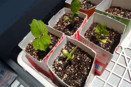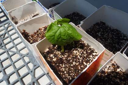 4年生の理科の授業で栽培しているツルレイシ(ゴーヤ)です。 順調に発芽しています。 SAIBAI