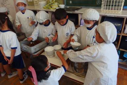 給食の配膳の様子です。