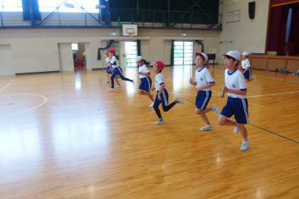 5年生の体育の授業です。 シャトルランをやっていました。 TAIIKU