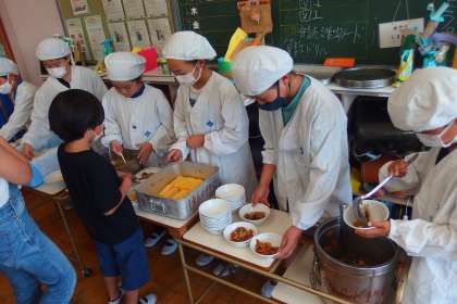 給食の配膳の様子です。