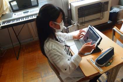タブレットの活用、そしてペア、グループでの協働的な学びの5年生の姿です。