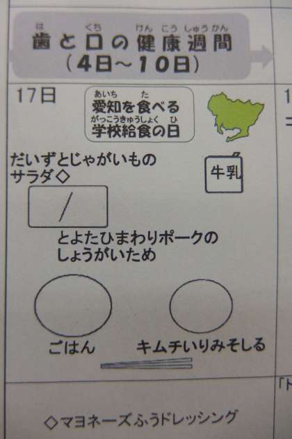 6月17日の東広瀬小学校 公開日 2024/06/24 更新日 2024/06/24 お知らせ 6月17日の給食のメニューです。 毎日の給食の献立や学校給食の情報は、豊田市教育委員会や豊田市役所のウェブサイト(ホームページ)でも見ることができます。 また、本校ホームページのトップページの下のほうにもリンクがあります。 パソコンやタブレット、スマホで見ることができます。 また、令和6年3月の献立表からは、豊田市学校連絡網システム(きずなネット)でもお知らせが届くようになりました。 6月の献立 7月の献立