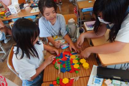 4年生の算数の授業です。 図形に関わる思考力向上のためにブロックを使って活動しました。 ZSAID