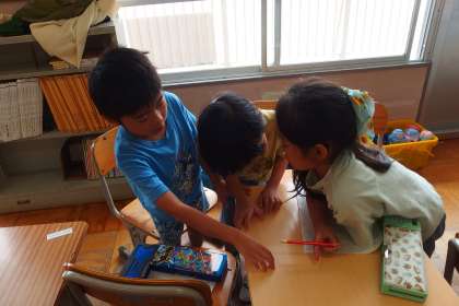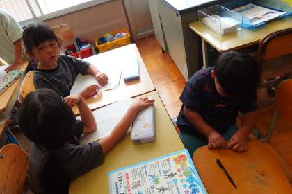 萩野小との交流行事の準備をしている1年生です。 HAIE