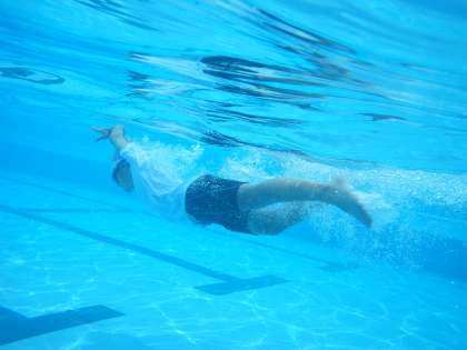 6年生の水泳の授業です。 水中OKなデジタルカメラで撮影しています。