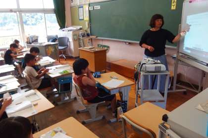 3年生の算数の授業です。 担任の先生はデジタル教科書を使って解説をしています。
