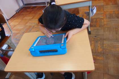 デジタルドリル(Qubena)に取り組む3年生です。