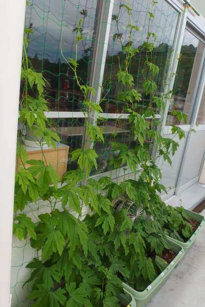 4年生の育てているツルレイシ(ゴーヤ)です。 SAIBAI