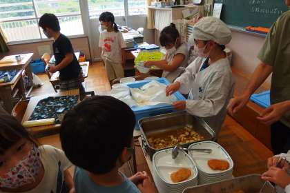 給食の配膳の様子です。