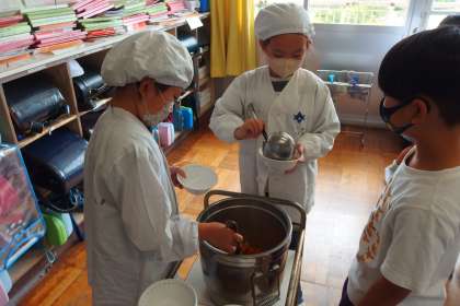 給食の配膳の様子です。