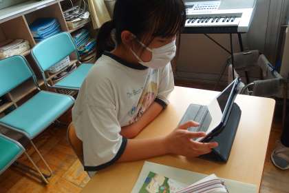 5年生の国語の授業です。 タブレットで原稿づくり。