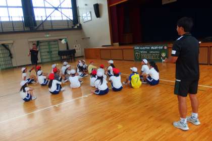 豊田市のスポーツ推進の一環として実施される「とよたスポーツ体験講座」として、トヨタヴェルブリッツの選手による「タグラグビー体験会」が、本校4年生を対処として実施されました。