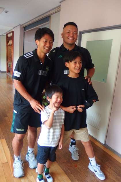 7月17日の東広瀬小学校 公開日 2024/08/13 更新日 2024/08/13 活動の様子 豊田市のスポーツ推進の一環として実施される「とよたスポーツ体験講座」として、トヨタヴェルブリッツの選手が来校しました。 たまたま廊下ですれ違った1年生と6年生が一緒に写真を撮ってもらいました。 うれしそうですね。 SPORTS TAIKEN KOUZA