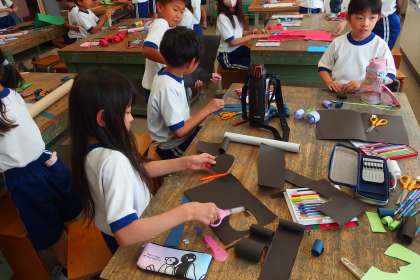 3年生の図工の授業です。 画用紙1枚から想像力たくましく作品を創り出します。 GAIU