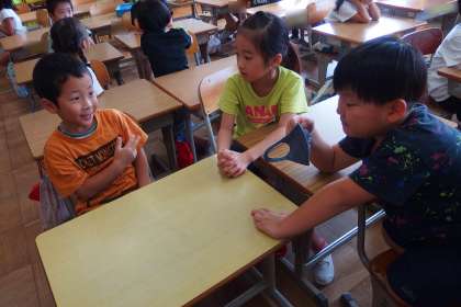 夏休みのできごと、思い出を伝え合う活動をしています。