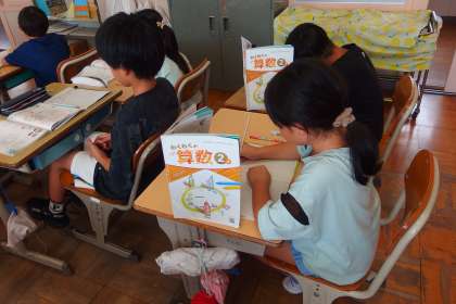 2年生の算数の授業です。 夏休み前の内容の振り返りから始めていました。 AIB