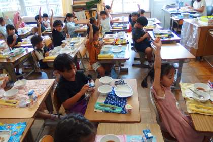 久しぶりの給食! 「給食おいしい人?」 「ハーーイ!」 AJIWAI LUNCH