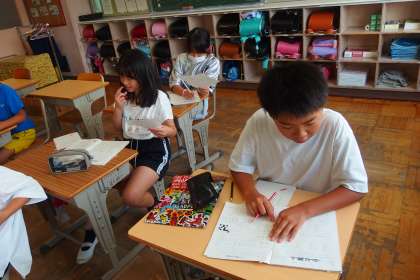4年生の授業の様子です。 夏休みの宿題の見直し、振り返りをしています。 AIXX.