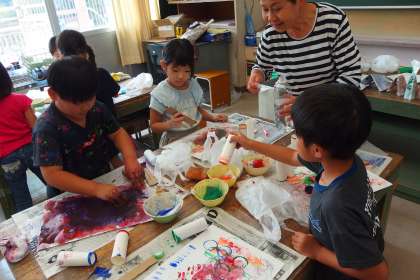 9月5日の東広瀬小学校 公開日 2024/09/05 更新日 2024/09/05 活動の様子 1年生の図工の授業です。 スポンジや巻き芯などを道具として絵の具で描画をしていました。 お互いの作品を見合いながら、工夫をしていました。 見合い、学び合いの姿でした。