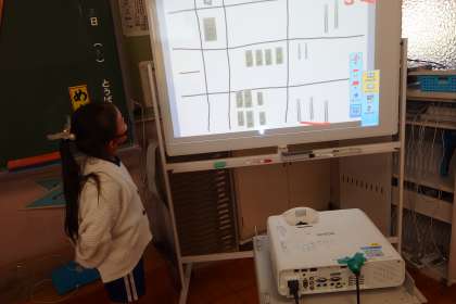 2年生の算数の授業です。 タブレットに書き込んだ自分の考えを、全員の前で発表していました。
