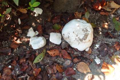 正門の横に白くて丸い巨大なキノコが出現していました。