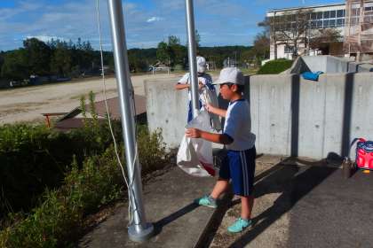 旗の掲揚をしてくれている6年生です。