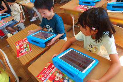 1年生の国語の授業です。 タブレットのアプリを使って漢字の復習をしていました。