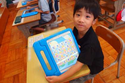 ひらがなの読み方の復習をタブレットを使って進めていました。