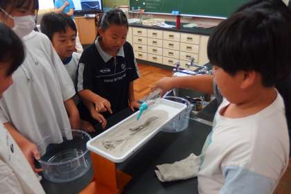 むずかしい実験を力を合わせて助け合い、学び合いで進めていきます。