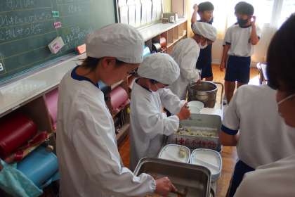 給食の配膳の様子です。
