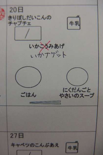今月は献立の変更が何回かあります。