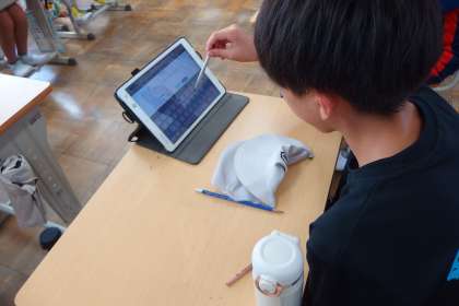 タブレットの気づきメモを使って意見を共有しています。