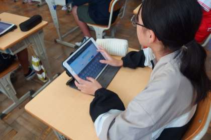 タブレットの気づきメモを使って意見を共有しています。