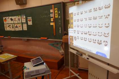 9月20日の東広瀬小学校 公開日 2024/09/21 更新日 2024/09/21 活動の様子 2年生の外国語活動の授業です。 ALTの先生といっしょに学び合い。 少し気の早いハロウィーンの準備です。