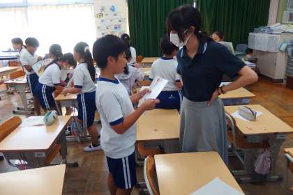 9月20日の東広瀬小学校 公開日 2024/09/21 更新日 2024/09/21 活動の様子 3年生の外国語活動の授業です。 「色」の英語表現を学びました。 ALTの先生との英会話に挑戦、学び合いの姿です。
