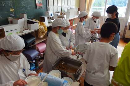 給食の配膳の様子です。