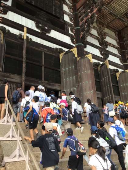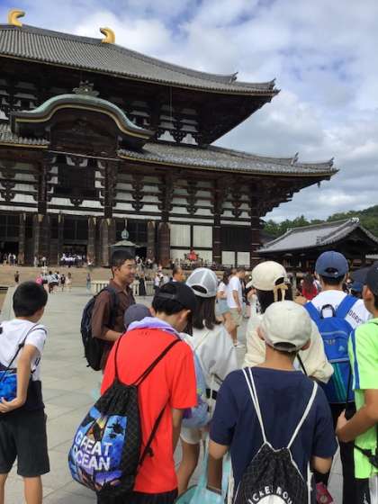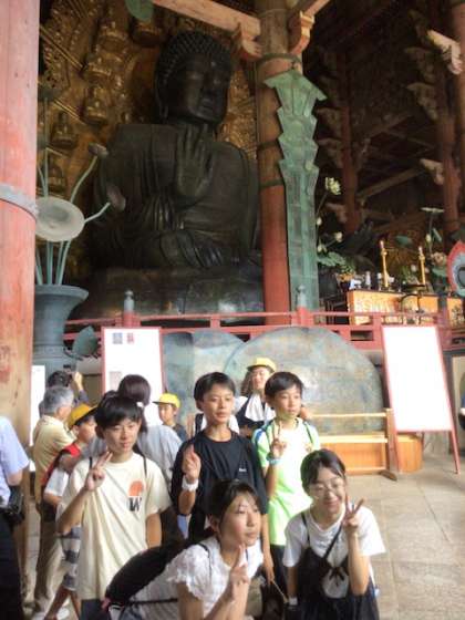 6年生の修学旅行は1日目です。 奈良に滞在中です。 東大寺では、目の前の大仏の大きさに圧倒されました。