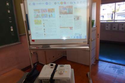 5年生の社会の授業です。 スクリーンに映っているのはデジタル教科書です。